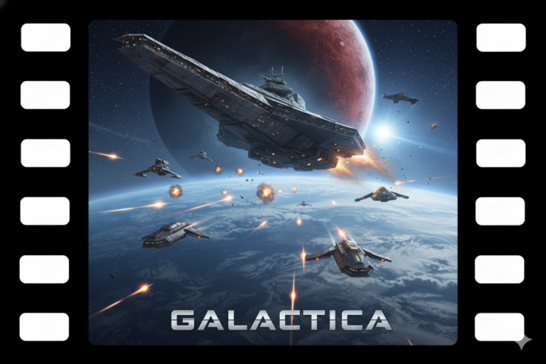人類が創造した機械生命体「サイロン」の攻撃により、人類はほぼ絶滅。わずか約5万人の生存者が、老朽化した宇宙空母**ギャラクティカ**を旗艦に、伝説上の惑星「**地球**」を目指して果てしない逃避行を繰り広げます。