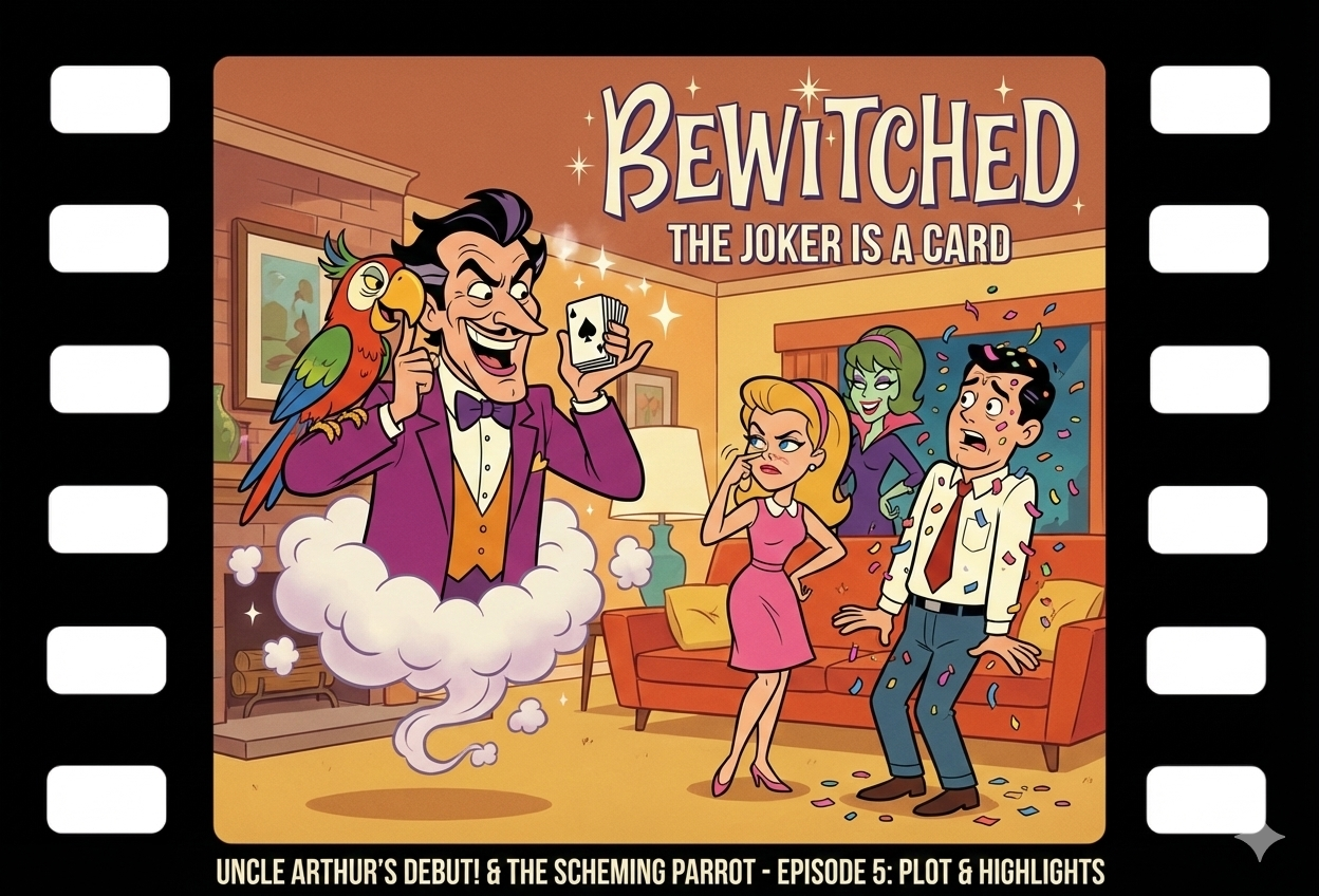 「奥さまは魔女(Bewitched)」の中でも特にファンからの人気が高い第2シーズン第5話「腹黒いオウム」(原題:The Joker Is a Card)。このエピソードは、サマンサの叔父であり、シリーズきってのトラブルメーカー「アーサーおじさん(Uncle Arthur)」が初登場する記念すべき回です。