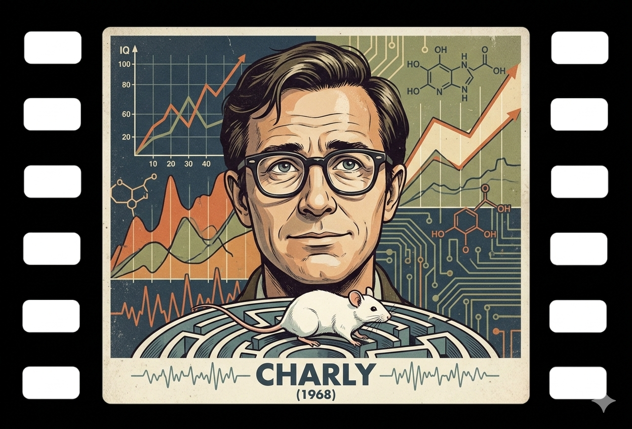 知的障害を持つ心優しい青年チャーリイ・ゴードンが、画期的な脳手術によって天才的な頭脳を手に入れるものの、やがて知性の獲得が必ずしも人間の幸福とは結びつかないという残酷な真実に直面していく姿を描いています。