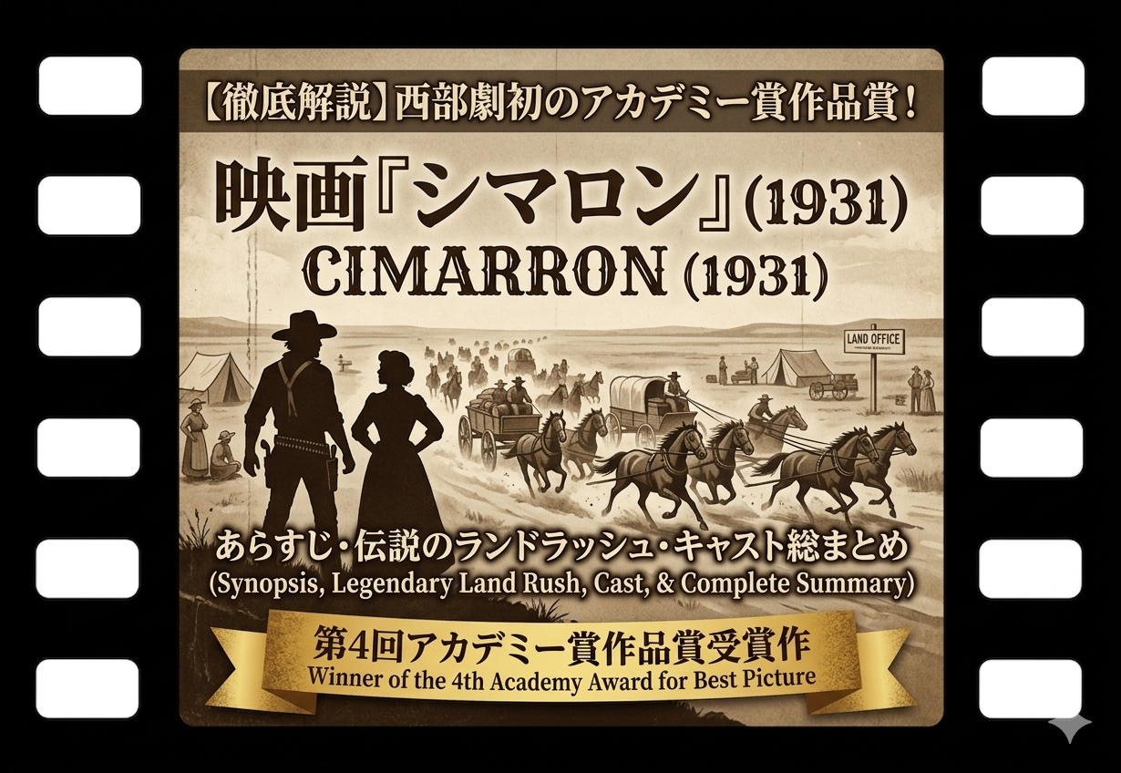 映画『シマロン』(1931年版)は、西部劇というジャンルが単なる「B級アクション」の枠を超え、アメリカ合衆国の建国の歴史や社会的変化を描く「一流の芸術作品(大河ドラマ)」としてアカデミー賞に認められた、歴史的なマイルストーンです。
