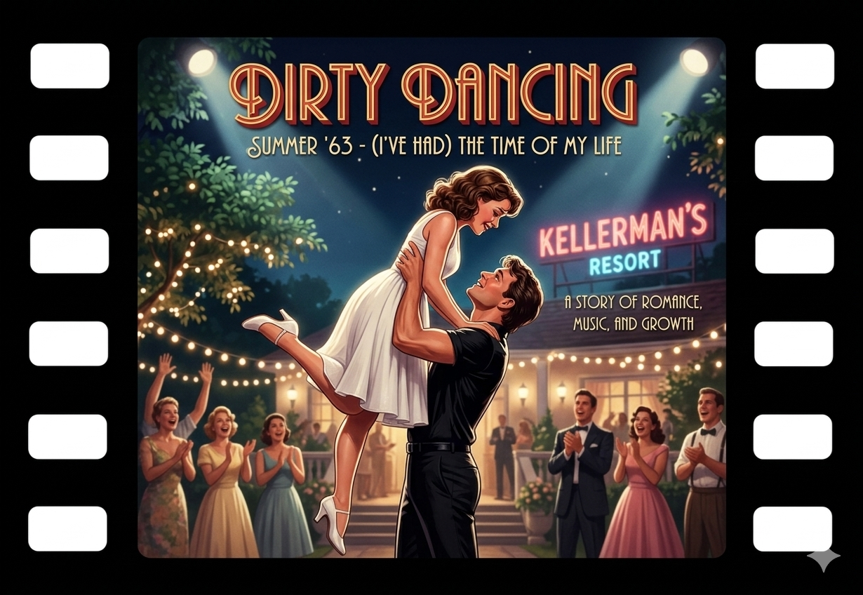 1987年に公開された映画『ダーティ・ダンシング』(原題: Dirty Dancing)は、1960年代のアメリカを舞台に、音楽とダンスを通じて階級の壁を越え、真実の愛と自己を確立していく若者たちの姿を描いた青春恋愛映画の金字塔です。
