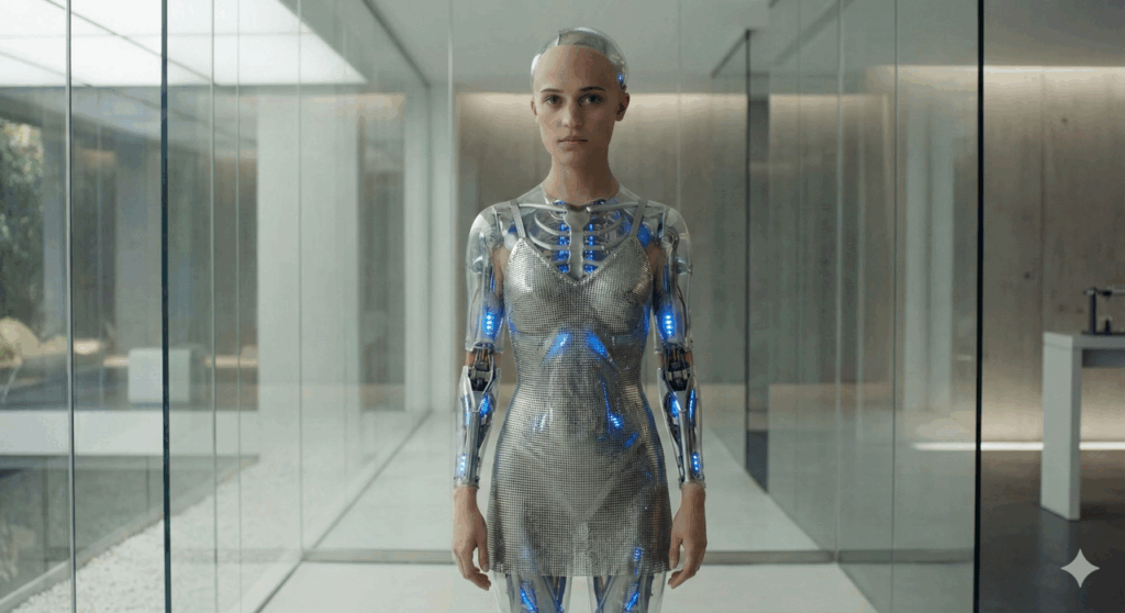 - 不気味の谷の利用: Avaのデザインは、顔と手足だけが人間で、胴体や後頭部は透明なメッシュ構造になっている。これは意図的に「ロボットであること」を強調し、観客や主人公を「不気味の谷」に突き落としつつ、その性的魅力で翻弄するという高度な心理戦を演出するための仕様である。