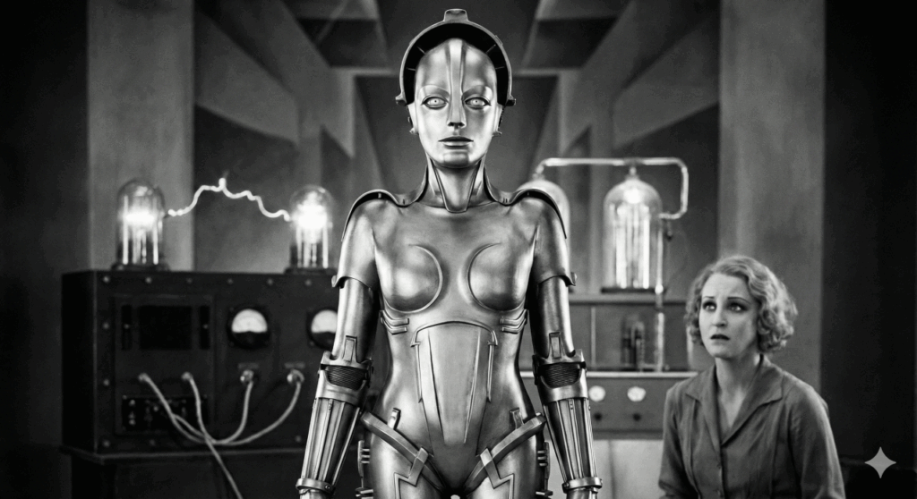 すべての映画的アンドロイドの「母」は、1927年のフリッツ・ラング監督作品『メトロポリス』に登場するマリア(マシネンメンシュ)である。彼女の存在は、後のSF作品におけるロボットデザインの文法を決定づけただけでなく、現実のヒューマノイド開発における「不気味の谷」の議論を先取りするものであった。