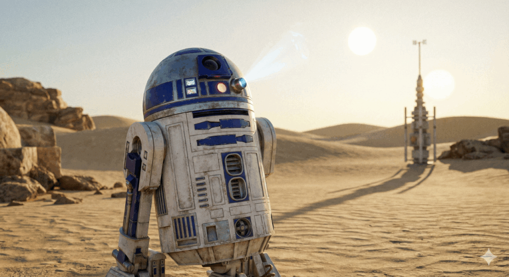 - インターフェース: 人間の言葉は話せず、電子音(ビープ音)で意思疎通を行う。この「言葉の通じなさ」が逆にペット的な愛着を喚起し、C-3POとの凸凹コンビ(漫才的なボケとツッコミ)を成立させている。