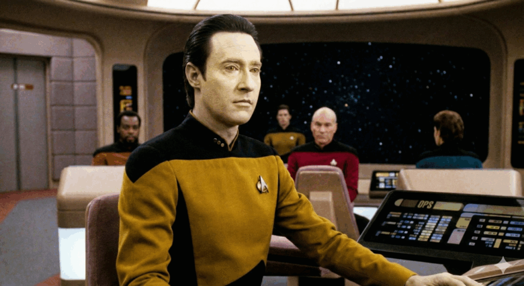 - 感情チップ: 初期のデータは感情を持たない論理的な存在だったが、映画『ジェネレーションズ』にて感情チップを移植することで、恐怖や喜びを「感じる」ようになる。これは、AIが論理的推論から感情的共感へと進化する過程での不安定さ(不気味の谷の道徳的側面)を描写する実験的な物語でもあった。