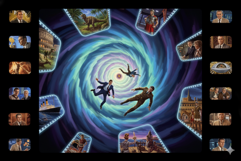 本作は全1シーズン、合計30話で放送が終了しました。各エピソードでは、『タイタニック号』の沈没や『真珠湾攻撃の前夜』、『ナポレオン』の時代など、過去の有名事件や歴史上の人物が登場し、歴史の改変を防ぎながら脱出を試みるという構成が特徴です。トニーとダグは「過去と未来をさまよう放浪者」となり、科学センターのメンバー(カーク所長、アン、スウェイン)が現代から彼らをサポートするという、当時としては斬新な設定でした。テーマ音楽は、後に『スター・ウォーズ』の音楽を手掛けるジョン・ウィリアムズが担当しており、重厚なオーケストラサウンドが作品のスケール感を高めています。