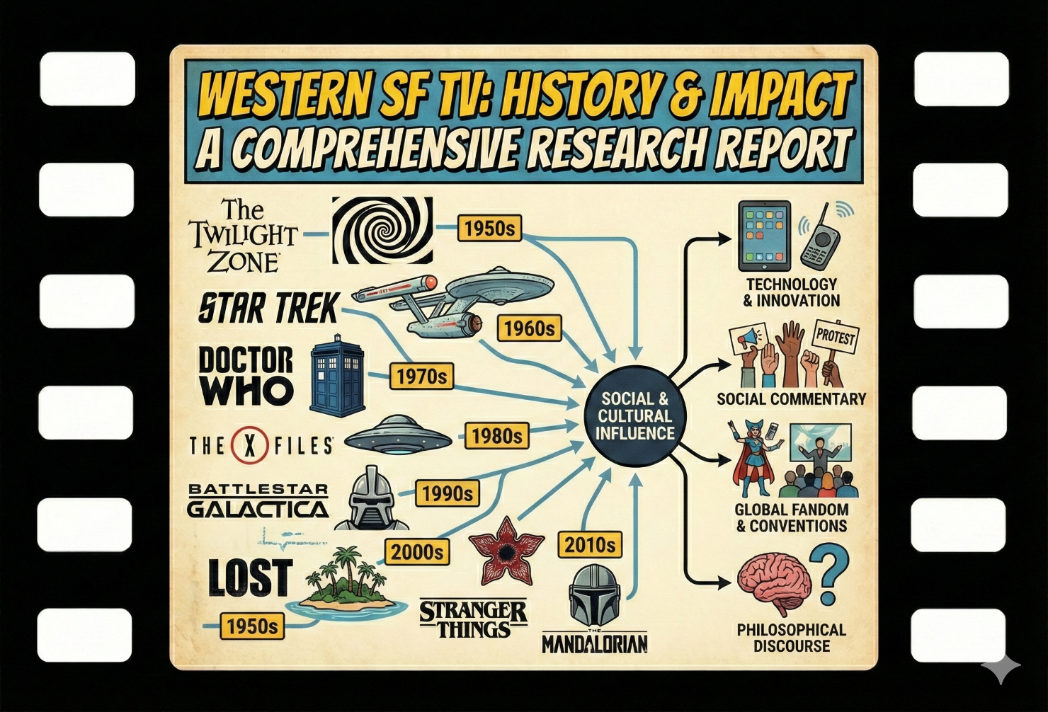 本報告書は、わずか1シーズン(全30話)で幕を閉じたこのシリーズが、なぜ半世紀以上を経た現在もなお「未完の傑作」として語り継がれ、後続のSF作品群――『クォンタム・リープ』、『スターゲイト』、『タイムレス』など――に決定的な遺伝子を残し続けているのかを、製作背景、物語構造、視覚技術、そして社会文化的影響の多角的な視点から徹底的に分析するものである。また、日本における受容とアニメーション作品への波及、そして21世紀に入ってからのリメイクの試みとその挫折についても詳細な検証を行う。