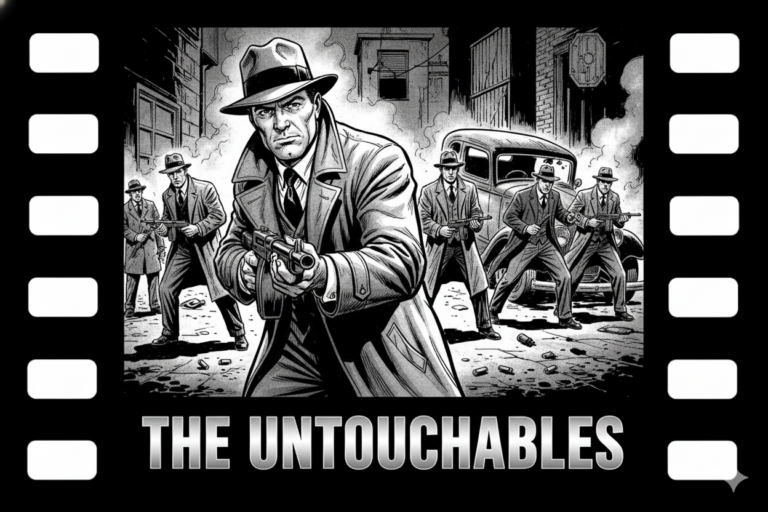 この作品は、財務省から派遣された若き捜査官エリオット・ネスが、彼自ら選び抜いた少人数の精鋭チーム「アンタッチャブル(The Untouchables=買収されない奴ら)」を率いて、巨大な犯罪組織に敢然と立ち向かう姿を描いた実録風のクライム・アクションドラマです。